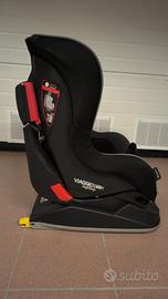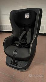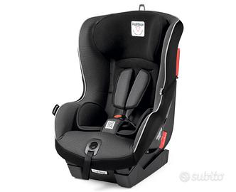 Seggiolino auto Peg Perego Viaggio 1 Duo-Fix K, colore nero. Il seggiolino è omologato Gruppo 1 ed è adatto ai bambini nella fascia di peso 9-18 kg (da 1 a 4 anni circa). Può essere fissato all'auto sia con le cinture di sicurezza che tramite l'apposita base Isofix 0+1 K fornita.