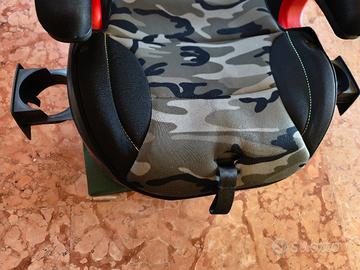Seggiolino auto Peg Perego Viaggio 2-3 Surefix colore verde e nero mimetico (Camouflage) omologato per il Gruppo 2/3 (da 15 a 36 kg, circa 3-12 anni) con sistema di protezione dagli impatti laterali e ganci Isofix integrati.