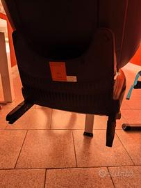 sistema Isofix e piede stabilizzatore. È provvisto di poggiatesta regolabile in altezza e di cinture a cinque punti. 360° di rotazione per facilitare l’uscita del bambino dall’auto. morbido riduttore primi mesi 0-4 anni
