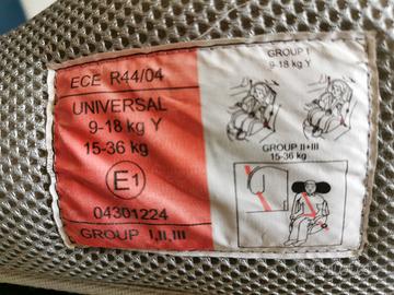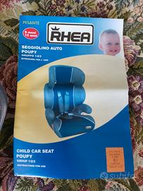 Vendo seggiolino per auto Rhea Poupy grigio e blu Gruppo 1 (9-18Kg) e Gruppo 2/3 (15-36Kg) idoneo da 1 a 12 anni – obbligatorio per bambini fino a 150cm. Può essere utilizzato anche solo come alzatina. Non ha attacco isofix, adatto ad auto con o senza isofix. Risponde alla normativa ECE R44/04 (Non più vendibile in negozio ma utilizzabile senza problemi). Non conforme nuova ECE R129