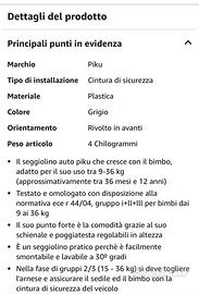Seggiolino auto in ottime condizioni, marca PIKU, descrizione nella galleria foto.
