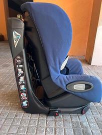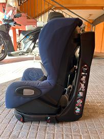 foto è un Bébé Confort Axiss (noto anche come Maxi-Cosi Axiss), un modello molto apprezzato per la sua seduta girevole a 90° che facilita l'inserimento del bambino in auto. Caratteristiche principali Gruppo 1: È omologato per bambini dai 9 ai 18 kg (approssimativamente dai 9 mesi ai 4 anni). Rotazione a 90°: La seduta può ruotare verso la portiera (sia a destra che a sinistra), permettendo di allacciare le cinture senza sforzare la schiena. Installazione: Si fissa utilizzando la cintura di sicurezza a 3 punti dell'auto, grazie a un sistema di tensionamento integrato che assicura una stabilità ottimale. Comfort: Offre diverse posizioni di reclinazione e la regolazione simultanea di poggiatesta e cinture, possibilita di posizionarlo avanti.