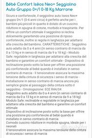 Seggiolino auto gruppo 0+/10-13 kg. colore marrone. Per altre caratteristiche vedere foto allegata n.5