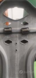 seggiolino completo di attacco alla bici ,con pulsante sgancio ed aggancio rapido dal telaio della bici, cinghie per fermare il bambino ma l'attacco è rotto non si bloccano ci vuole gancio nuovo,sali scendi piedi con fasce blocca gambe, la colorazione è grigio sbiadito . comunque utilizzabile gancio nuovo costa 6 euro su internet
