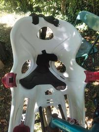 Seggiolino da bici per bambini. Adatto fino a 15 kg. Montaggio al telaio in posizione anteriore (tra la sella e il manubrio). Una volta montato, il seggiolino può essere tolto e rimesso in pochi secondi.