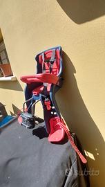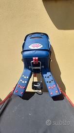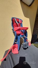 Vendo seggiolino anteriore per bicicletta marca Okbaby, modello Orion (made in Italy). Di colore blu scuro con imbottiture e dettagli rossi, come visibile in foto. Il seggiolino è in ottime condizioni generali, pulito, ben tenuto e completo di tutti i componenti: Cinture di sicurezza a 3 punti con fibbia centrale. Poggiapiedi regolabili in altezza con cinturini di bloccaggio rossi. Maniglione frontale rosso (utile per far appoggiare le mani al bimbo). Blocchetto di fissaggio al telaio incluso e completo di bulloneria. Specifiche: Adatto per bambini dai 7-8 mesi fino a circa 3 anni. Portata massima: 15 kg. Si fissa sul tubo di sterzo della bicicletta consegna a mano zona Padova o Mestre