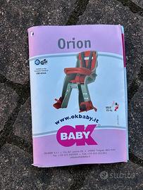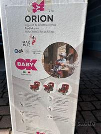 Seggiolino per bambini per bicicletta anteriore marca ORION mod. Baby ok. Perfette condizioni e con scatola di imballaggio originale. Facile installazione su bici (ha gli adattatori per diversi diametri). Peso massimo 15KG. come nella foto. E' possibile vedere l'articolo. Non spedisco.