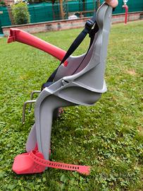 Seggiolino per bici Orion OKBABY per bambini da 7/8 mesi in su e fino a 15 Kg. Si installa con fissaggio al tubo di sterzo (anteriore) della bici. Si adatta facilmente alla maggior parte dei telai delle biciclette. Imbottitura della seduta idrorepellente, atermica e lavabile. Poggiapiedi regolabili in altezza in 3 posizioni. No confezione originale. Buone condizioni.