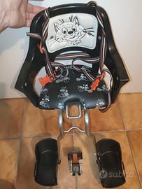 Vendo seggiolino per bambini da fissare al manubrio con l'attacco in dotazione. Il telaio è tutto in acciaio e la seduta è imbottita.