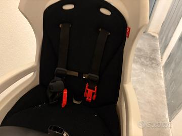 Il design del sedile include ampio spazio per un casco, garantendo comfort e sicurezza del bambino impedendo che la testa venga spinta in avanti durante la corsa.