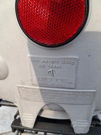 Ottimo seggiolino bimbi con cintura e poggia piedi regolabile, noi lo avevamo installato nel posteriore della bici. Prodotto Italiano da DIEFFE SRL EN 14344 Ritiro a mano.