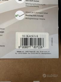 Si fissa al tubo piantone del telaio. Con poggiapiedi regolabili sul retro in altezza in 15 posizioni, dotati di cinturini di sicurezza per evitare che i piedi del bambino entrino in contatto con i raggi della ruota. Si fissa al tubo piantone del telaio ed è adattabile a telai con diametro compreso tra 28 mm e 40 mm.