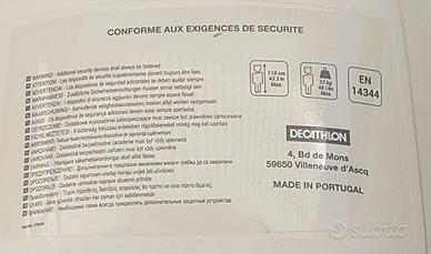 Vendo seggiolino POSTERIORE Decathlon, omologato EN14344 per bambini fino a 22 kg (altezza max 110 cm). Solido, sicuro e molto confortevole grazie allo schienale alto e protettivo. - Cintura con imbottiture e doppia regolazione (lunghezza e punto di attacco) per i bimbi più alti. Gancio di chiusura a prova di bambino. - Poggiapiedi regolabili in altezza per seguire la crescita del bambino. Completi di laccetti di sicurezza. - Attacco Universale adatto a bici da uomo e donna: si fissa al piantone sotto la sella (telaio), quindi è perfetto anche per bici senza portapacchi (extra: se presente il portapacchi, è possibile, con una semplice fascetta, collegarlo così da ottenere un fissaggio ancora più saldo). Il seggiolino è usato, strutturalmente perfetto e pulito. Imbottitura originale lavabile, già igienizzata e pronta all'uso. Montaggio semplice e intuitivo (anche senza manuale). Non teme agenti atmosferici (pioggia/sole). Prezzo: 35,00 € trattabili. Preferisco lo scambio a mano in zona Cervia / Cesenatico / Bellaria o limitrofe. OFFERTA: Se cerchi anche un seggiolino anteriore, ho in vendita un Bellelli (vedi i miei annunci). Se li prendi entrambi, il prezzo totale è scontato.