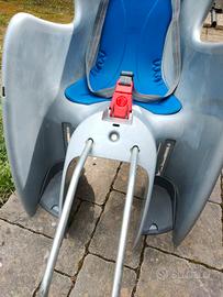 Seggiolino portabimbo posteriore con fissaggio al piantone verticale del telaio.