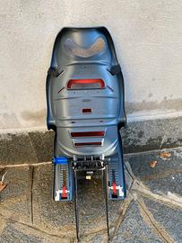 Montaggio: al portapacchi secondo normativa ISO 11243 -2016 Peso del bambino: Tra 9 kg e 22 kg Peso seggiolino : 2,0 kg Certificato secondo EN14344 Dimensioni: larghezza 349 x lunghezza 514x altezza 726 mm. Sicurezza: cintura con chiusura a tre punti , proteggi gambe per non infilare le gambe del bimbo nei raggi Comfort: spazio per il casco, piedini regolabili in continuo. Altre caratteristiche: colorato contro raggi UV per resistenza ad agenti atmosferici , cuscino lavabile ed ampio.