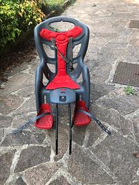 Seggiolino porta bambino per bicicletta, Bellini, rosso e grigio, fino a 22kg, con sistema di fissaggio. Ottimo stato