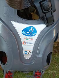Seggiolino Bici Anteriore Bellelli Freccia Descrizione: Vendo seggiolino anteriore per bicicletta Bellelli Freccia (linea Mamma Cangura), ideale per godersi le passeggiate in bici con il proprio bambino in totale sicurezza e comfort. Dettagli tecnici e comfort: Posizione Anteriore: Si fissa al telaio (tubo dello sterzo) permettendo un controllo costante del bambino. Portata: Omologato per bambini fino a 15 kg. Sicurezza Certificata: Conforme alla normativa europea EN 14344 (certificazione TÜV GS). Massima Protezione: Dotato di cinture di sicurezza regolabili e maniglione frontale "a cerchio" per offrire un appiglio sicuro al bambino. Comfort: Seduta ampia con imbottitura rossa (removibile e lavabile) e fori di ventilazione sullo schienale per le giornate calde. Poggiapiedi Regolabili: Le ampie protezioni impediscono ai piedi di toccare i raggi della ruota e sono regolabili in altezza per seguire la crescita. Stato del prodotto: L'articolo è usato ma in buone condizioni strutturali. Include il blocco di fissaggio universale per il telaio.