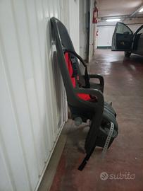 Seggiolino da bicicletta per bambini con fissaggio sul portapacchi posteriore della bicicletta.