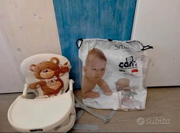 Rialzo Cam regolabile in altezza per sedia con vassoio,rivestimento con orsetto e sacchetto originale,tutto ben conservato.