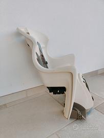 Seggiolino bici bimbo posteriore colore sabbia, con sicurezza laterale, Adesivo catarifrangente sul retro, Imbragature di sicurezza regolabili in 3 misure, Fibbie di sicurezza a prova di bambino, extra fibbia da innestare sul telaio, Extra protezioni per prevenire il contatto, 3 altezze per regolare le imbragature di sicurezza, Poggiapiedi regolabili in 4 misure. Peso bambino da 9 a 22 Kg. INTATTO e PERFETTAMENTE FUNZIONANTE.