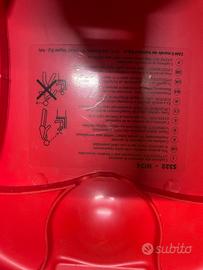 Seggiolino portatile da campeggio o viaggio molto pratico e leggero. Chiuso occupa poco spazio. Regolabile in alzata . Si fissa con cinghie alla sedia ed ha bretelle per bambino .
