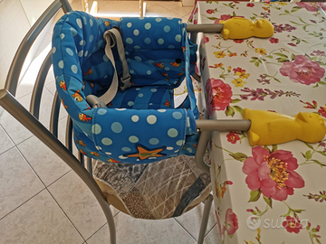 Vendo in ottimo stato seggiolino chicco da tavolo Quick adjust, con 2 regolazione di seduta, a partire dai 6 mesi fino a 15 kg. Cintura di sicurezza a 3 punti. Seduta e schienale imbottiti.