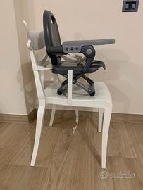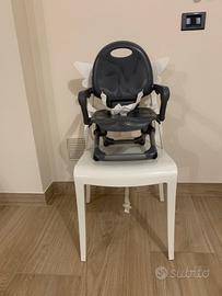Vendo rialzo sedia x bambini da 6 a 36 mesi regolabile in 3 posizioni e con braccioli, completo di cinghie x fissaggio alla sedia e cintura girovita.Richiudibile e pratico x il trasporto,facilmente pulibile..