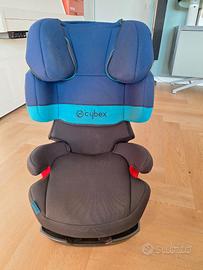 Seggiolino per trasporto bambini in automobile. Marca Cibex, modello PALLAS-fix. Colore Blu, nero e azzurro. Gruppo I, II e III. Da 9kg a 36kg (età da 9 mesi a 12 anni circa). Cuscino di sicurezza ad ampiezza regolabile. Seggiolino 2-in-1. Comoda funzione reclinabile. Sistema L.S.P. (sistema di protezione lineare a impatto laterale). Connettori ISOFIX. Buone condizioni. Presenti ancora ganci proteggi auto mai aperti, come da foto. Non rovinato, necessaria solo una pulita approfondita.