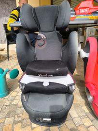 Vendo seggiolino cybex nero, con attacchi isofix. usato ma ancora in condizioni discrete, da come si vede in foto è in alcuni punti sbiadito e in altri leggermente consumato, per contatto; difetti che comunque non ne compromettono l' uso. Utilizzabile da 9 a 36 kg, fasce 1/2/3