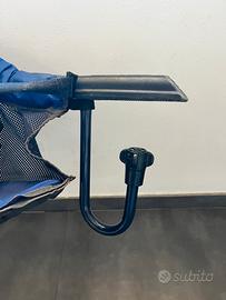Seggiolino da tavolo con fissaggio regolabile e cintura di sicurezza. Sacca da trasporto con taschina porta oggetti.