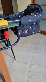 Seggiolino da tavolo (o seggiolino clip-on) per bambini. Questo tipo di seggiolino si aggancia direttamente al piano del tavolo, permettendo al bambino di sedersi con la famiglia durante i pasti.