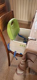 Seggiolino da tavolo, comodo per i pranzi o le cene fuori casa, per le vacanze.... Completamente richiedibile. Con vassoio e cinte di sicurezza.