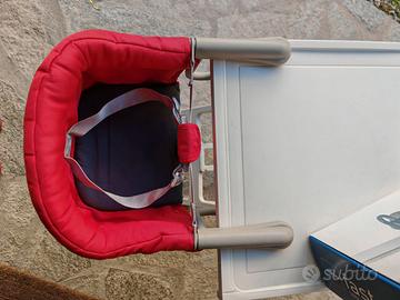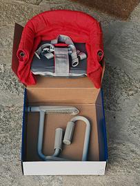 LA poltrona da tavola per i nostri piccoli, pratico, solidissimo, ben progettato: si aggancia saldamente alla maggior parte dei tavoli, spessi o sottili che siano, e la forma degli attacchi consente di superare la maggior-parte dei bordi finti (avete presente quei tavoli che sembrano spessi ma in realtà hanno solo un finto bordo e superato quello il tavolo torna sottile? Ecco, i ganci a U li superano e si agganciano lo stesso) . I tessuti sono anti-strappo e lavabili, e una volta smontato si ripone nella sua sacca integrata. Compresa confezione originale e manuali.