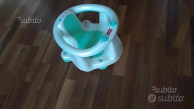 Seggiolino da bagno per bambini dai 7 ai 18 mesi. Base con potenti ventose, con sistema di sgancio, per consentire il fissaggio alla vasca da bagno