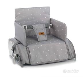 E’ dotata di: scompartimento interno senza divisioni per approfittare del massimo spazio; apertura frontale per facilitare l’accesso con la borsa seggiolone già installata sulla sedia; tasche laterali per riporre più cose. Quando è chiuso, si trasforma in una comoda borsa a tracolla o zainetto. Perfetto per riporre pannolini, bavaglini, merende o i giocattoli del bambino.