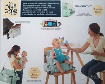 Pratica borsa Jane Kids Zone (Modello AVANT) seggiolino-elevatore, con struttura interna rigida, è dotata di scompartimenti e si trasforma in una comoda sediolina per la pappa, agganciandola alla seduta e allo schienale della sedia per adulti in modo rapido e sicuro. Con lati rinforzati per evitare che il bambino cada di lato. Rivestimento imbottito.