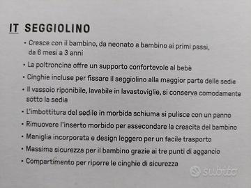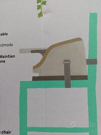 Seggiolino bimbo da 6 mesi adatto per rafforzamento spalle, ancora imballato,in plastica imbottita con vassoio a scomparsa .