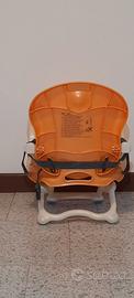 Seggiolino "CAM" infanzia, utilizzo da terra oppure sopra sedia con cinghie di sicurezza, regolazione in altezza, richiudibile per agevole trasporto in soli 9 cm.