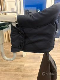 Trasportabile ovunque grazie all’ingombro ridotto, quando ripiegato e alla pratica borsa di trasporto integrata. È dotato di una tasca porta oggetti, un utile scompartimento che si trova sul retro, così puoi sistemare il ciuccio, il biberon o il bavaglino. SUPER ADATTABILE: Grazie all’ampia escursione delle pinze, si può utilizzare anche su tavoli con asse inferiore.