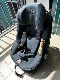 Il seggiolino ha agganci Isofix e soprattutto è girevole a 360 gradi, comodissimo perchè intanto quando il bimbo è piccolo lo si mette nel senso contrario a quello di marcia mentre quando cresce lo si gira in modo che guardi avanti. E poi soprattutto il fatto che si possa facilmente girare verso la portiera rende il carico/scarico del bimbo estremamente facile.