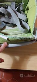 Braccioli laterali di contenimento del corpo (insieme alla cinghia a 5 punti evitano la caduta del bambino)