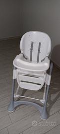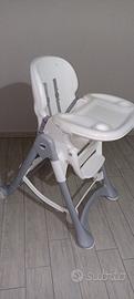 Vendo seggiolino CAM, come da foto, regolabile in altezza con 3 inclinazioni dello schienale. Movimento sincronizzato di schienale e appoggiapiedi. Ci sono 2 tavolette regolabili e removibili (+ una tavoletta di sicurezza). Vani portaposate. Ruote posteriori con freno.