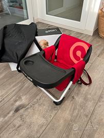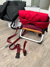 Seggiolino per le pappe da viaggio pieghevole completo di piano/tavolo appoggio, sacca per il trasporto, inibitoria