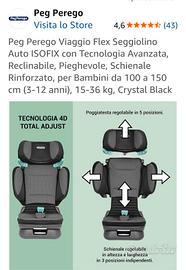 Peg Perego Viaggio Flex Seggiolino Auto ISOFIX con Tecnologia Avanzata, Reclinabile, Pieghevole, Schienale Rinforzato, per Bambini da 100 a 150 cm (3-12 anni), 15-36 kg, Crystal Black