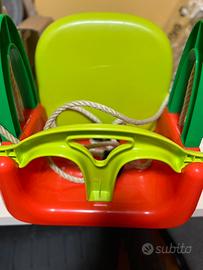 Seggiolino per altalena 3 in 1, nuovo mai usato, componibile adatto per bambini diverse età 0-3, 3-5, 5+, materiale resistente con cordini in nylon resistente ed anelli con fermi in plastica dura. Portata massima 60 kg.