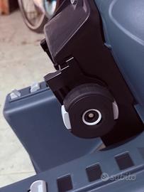 Seggiolino da fissare sul portapacchi classico con norma ISO11243, cintura di sicurezza regolabile in 3 punti, ergonomico per l'uso del casco, poggiapiedi regolabili in 4 posizioni per essere usato durante la crescita del bambino.