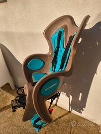 Seggiolino posteriore per bici BTwin molto comodo con protezione per la testa alta e sicura , completo di imbottitura originale di colore azzurro