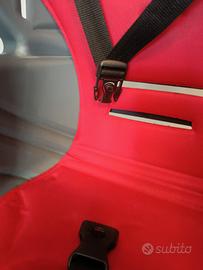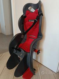 Vendo seggiolino usato posteriore per bicicletta con aggancio adattato per portapacchi (come da foto). Regolazioni varie per la crescita del bimbo/a e pulsante sicurezza della cinghia. Segni di usura che non compromettono il funzionamento e la sicurezza. Colore: grigio scuro e rosso