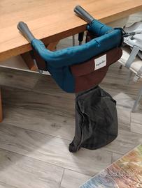 Seggiolino per la pappa Inglesina da attaccare al tavolo. Pari al nuovo, comodo per il trasporto grazie alla sacca incorporata, con tasca porta oggetti sul retro.