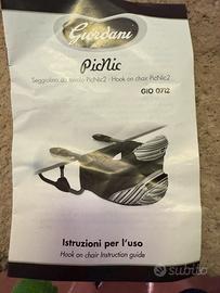 Seggiolino da tavola, smontabile e portatile con confezione originale per il trasporto.